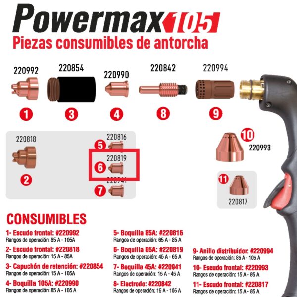 HYPERTHERM BOQUILLA (NOZZLE) 65A PMX 65/85/105 220819
