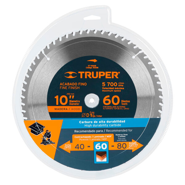 TRUPER DISCO MADERA P/SIERRA ACOLILLADORA 10″ EJE 1″ 60 DIENTES